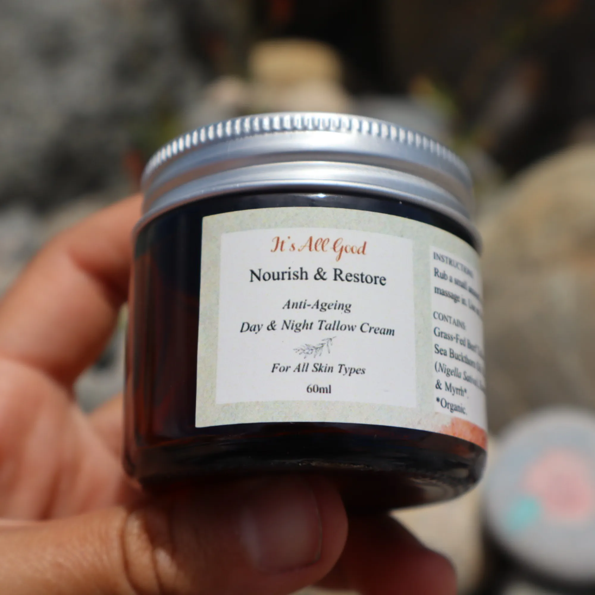 Nourish & Restore Cream is made from grass-fed New Zealand beef tallow and natural oils that will protect your skin from moisture loss, environmental stresses, and signs of premature ageing while deeply moisturising, softening, and rejuvenating it.